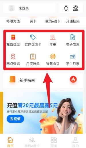3、继续在首页下方可选择充值优惠、实体优惠卡、年审、电子发票等多项便民服务。