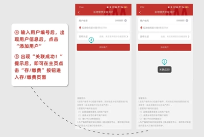 ⑤出现 “关联成功!”提示后,即可在主页点击“存/缴费” 按钮进入存/缴费页面