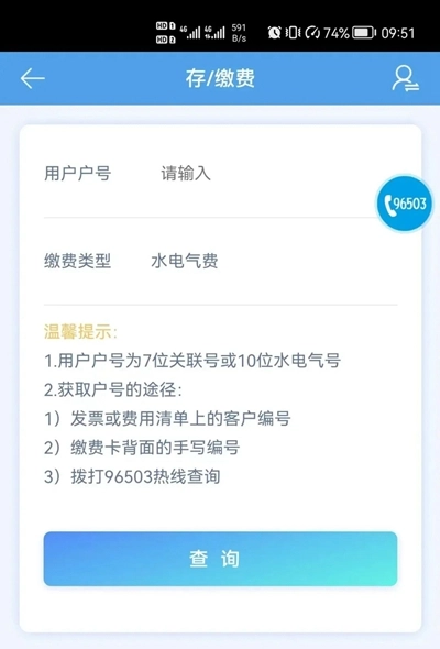 ②输入用户编号 (不知道编号可拨打96503或者到就近的客户服务中心查询