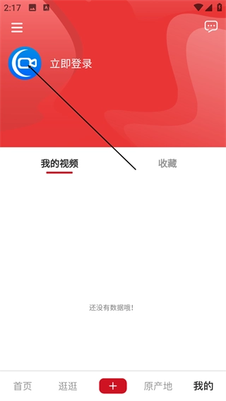 2、进入【我的】页面,点击【立即登录】按钮可进入登录界面,该页面包含【我的视频】与【收藏】板块。