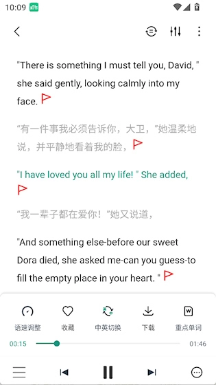 文本同步展示:部分音频附带对应的英文文本,边聆听边查看能帮助理解词汇和句型结构。