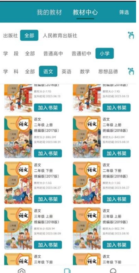 点击【加入书架】按钮,即可把这本教材添加至“我的教材”列表。若想了解教材的详细信息,点击教材封面即可查看。