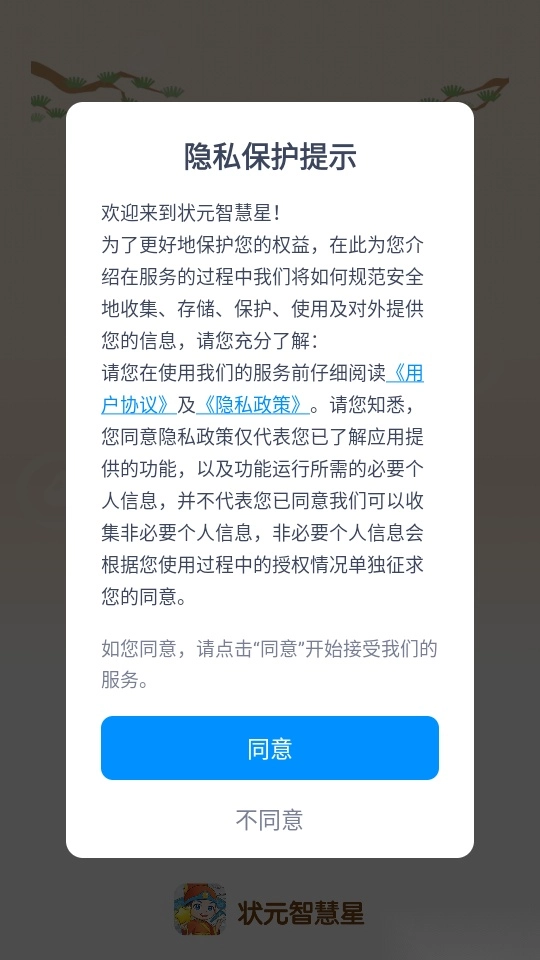 1.打开软件阅读“隐私保护提示”点击“同意”进入