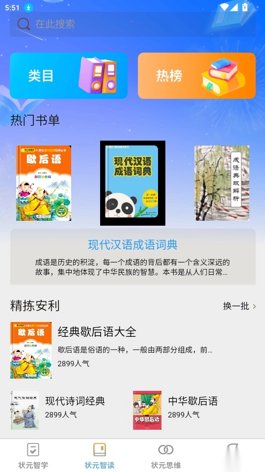 进入状元智读页面后,你可以任意挑选喜欢的书籍并点击进入。