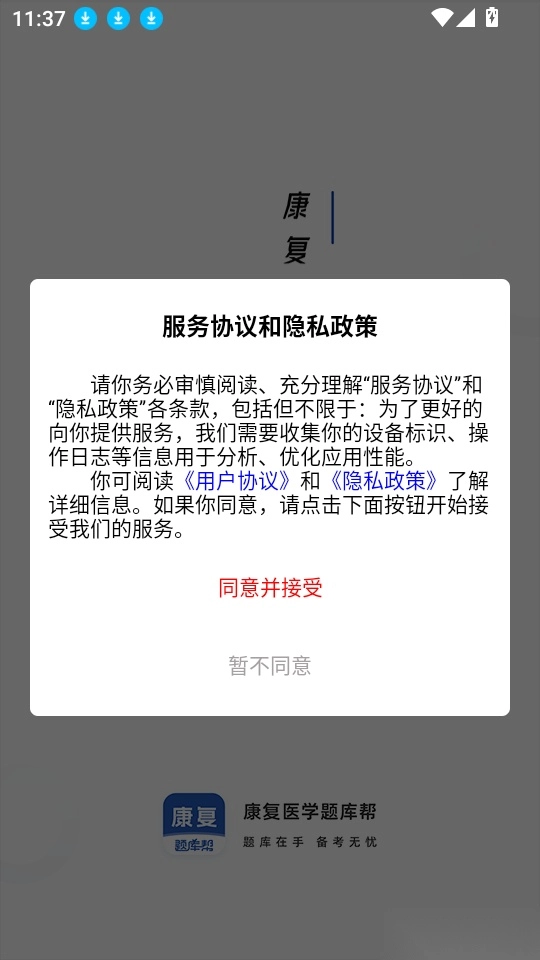 1、首先打开应用点击“同意并接受”按钮来进入中。