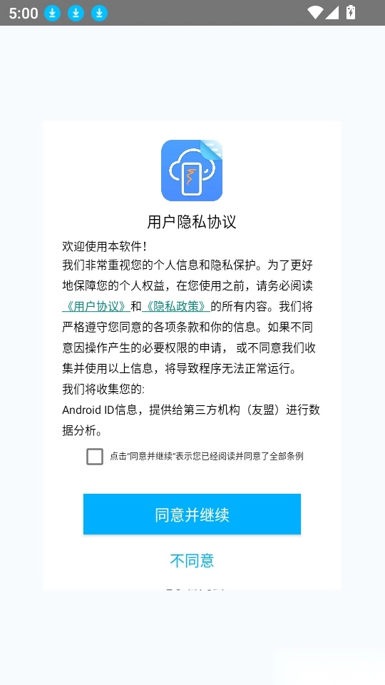 1、首先打开应用点击“同意并继续”按钮来进入中。
