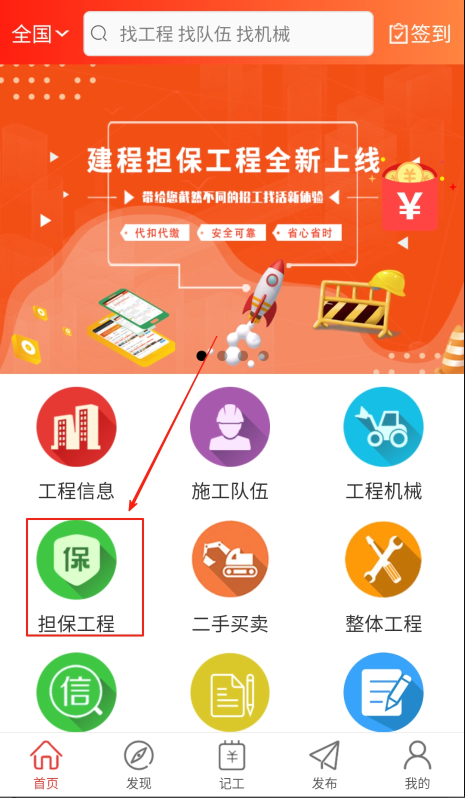点击首页的担保工程板块,设置好区域筛选条件,就能查看最新的招标项目了。