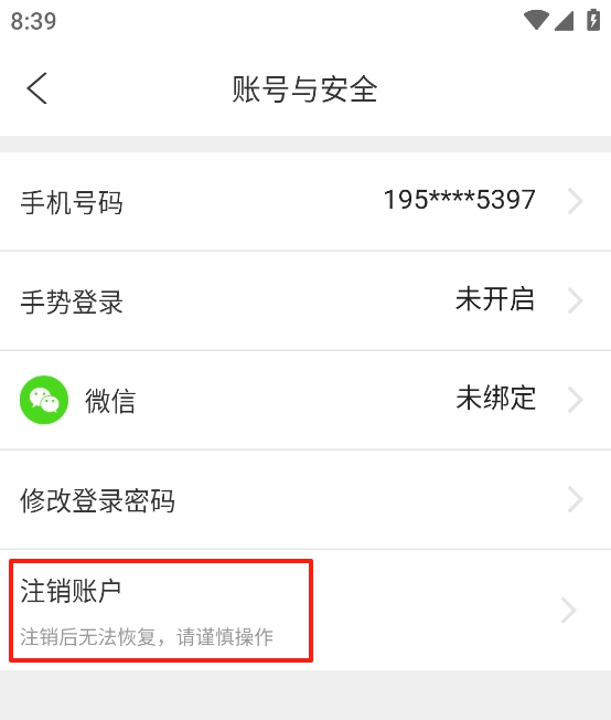 点击【注销账号】