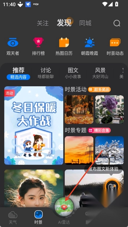 可以查看各地实时天气照片,也能分享自己看到的气象场景