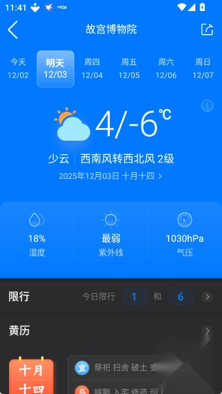 生活指数包含穿衣、钓鱼、护肤等方面的内容,同时提供星座运势、黄历宜忌的查询功能,还能动态呈现日出日落的时间。