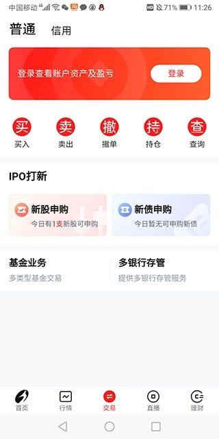 在交易页面中,用户既能够进行普通委托交易的登录操作,也可以完成信用融资融券交易的登录操作。