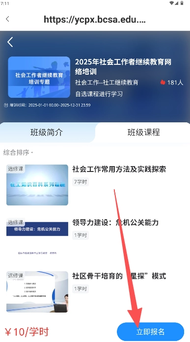 查看课程详情并按学时点击立即报名完成缴费学习。