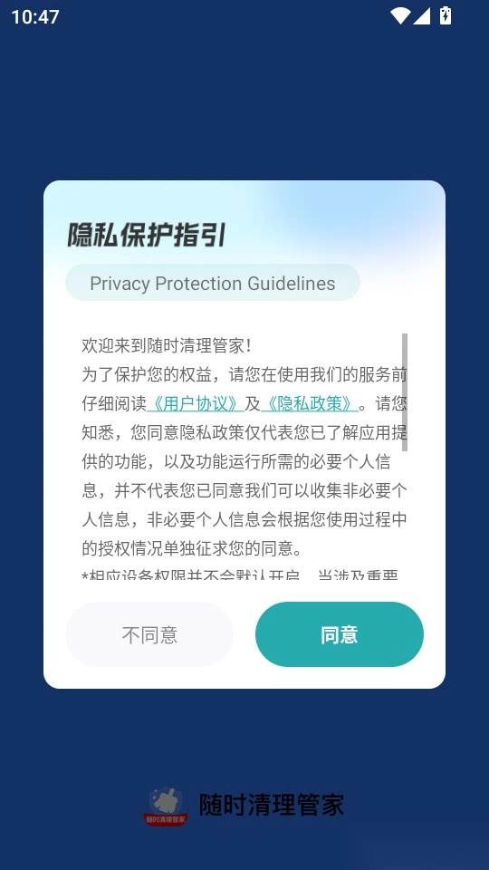首先打开软件,阅读其中的“隐私保护指引”,随后点击“同意”按钮,即可进入程序。