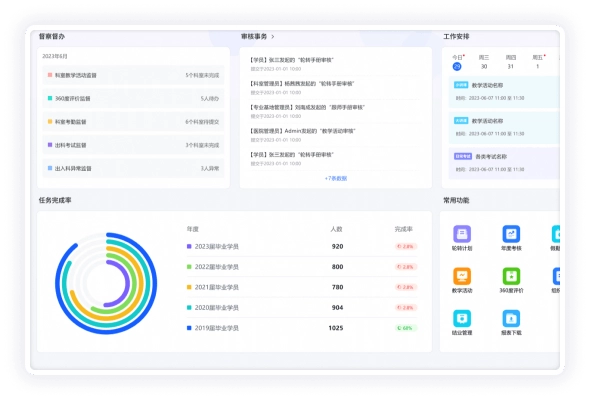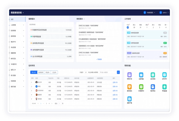 远秋住院医师规范化培训系统是在数百家住培基地多年实践应用的基础上,严格对标国家最新住培大纲要求,历经超百次深度调研与需求分析后全新研发的住培全流程管理平台。系统全面覆盖学员报到、轮转规划、出入科管理、考试考核组织、轮转手册数字化管理、360度综合评价、教学活动统筹、考勤统计、师资队伍建设、督导质控等住培核心业务功能,同时配套丰富的辅助管理模块,可实现住培工作的流程化运转、智能化管控、规范化实施与一体化统筹,显著提升管理效率、精度与整体成效。