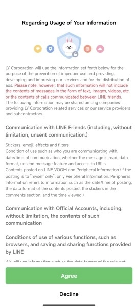 在账号验证页面,需同意LINE的相关服务条款与隐私政策,并填写所在地区的手机号码。