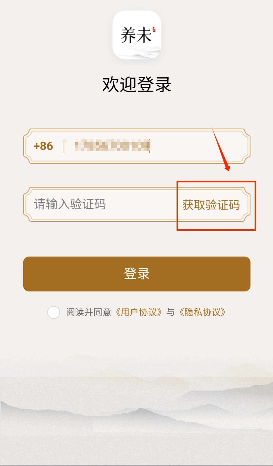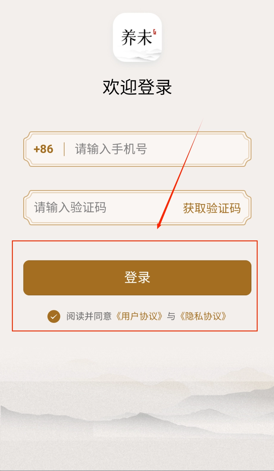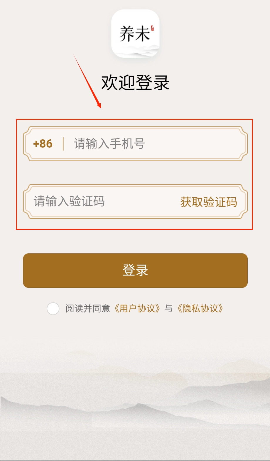 在登录界面填写手机号与获取到的验证码时,务必认真阅读并勾选同意用户协议及隐私政策的相关选项。