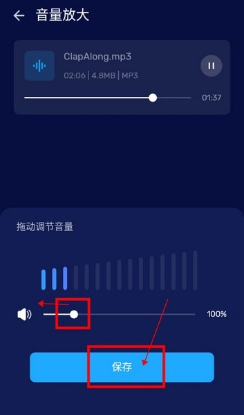 在【音量放大】页面的底部设有滑块,只需拖动该滑块,即可对音量大小进行调整。