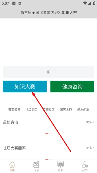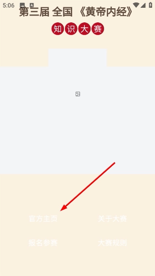 1、此页面为第三届全国《黄帝内经》知识大赛的相关界面,点击【主页】选项,即可了解赛事的基本信息。