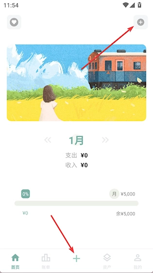 1、打开青子记账,点击右上角或底部的+开始记账