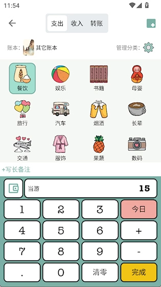 2、用支出、收入和转账三种记账类型
