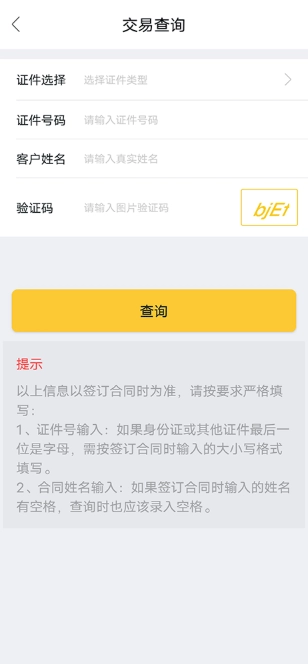 3、进入交易查询界面,输入信息后点击查询即可。
