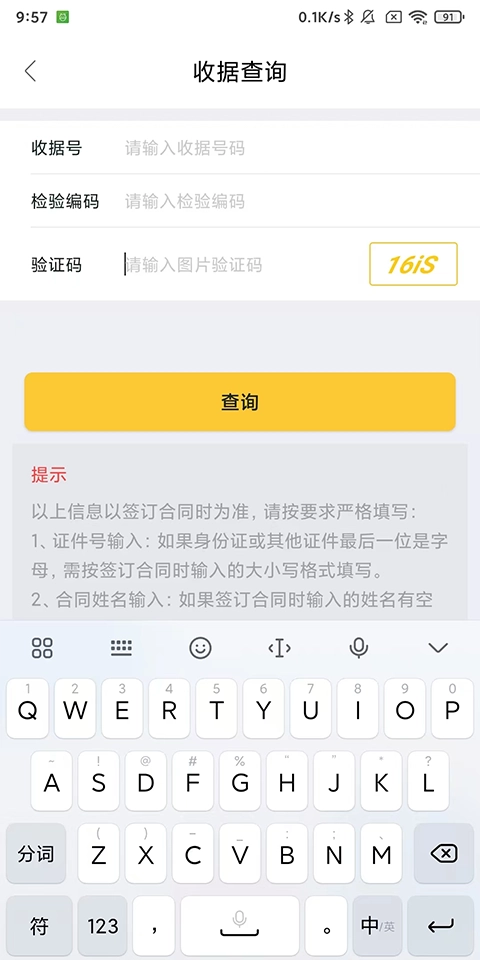 3、输入相关信息,就能查询交易进度或者合同交易收据。