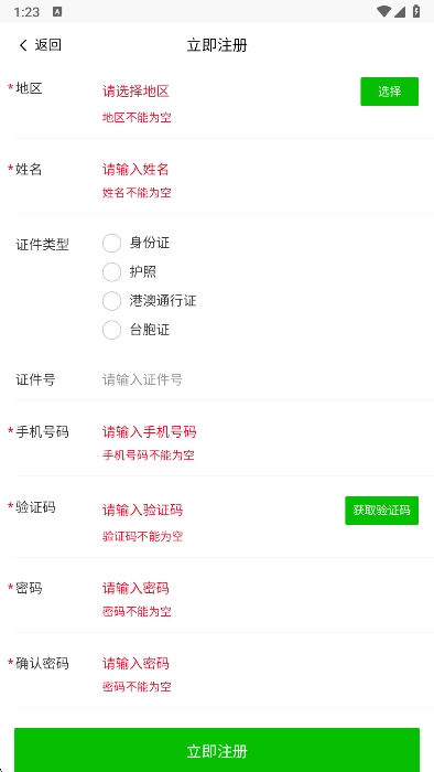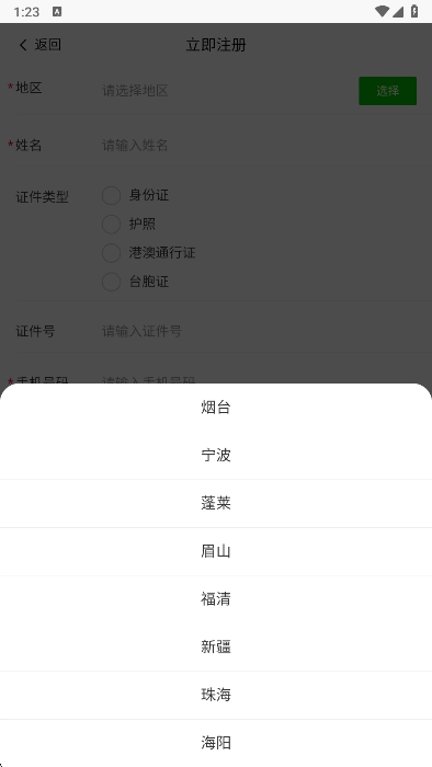 3、没有账号的朋友可以立即进行注册,选择好地区