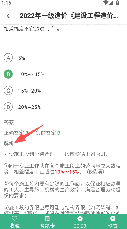 答题后配备对应解析,解析说明知识点相关原则,辅助深入理解题目对应的考点内容。