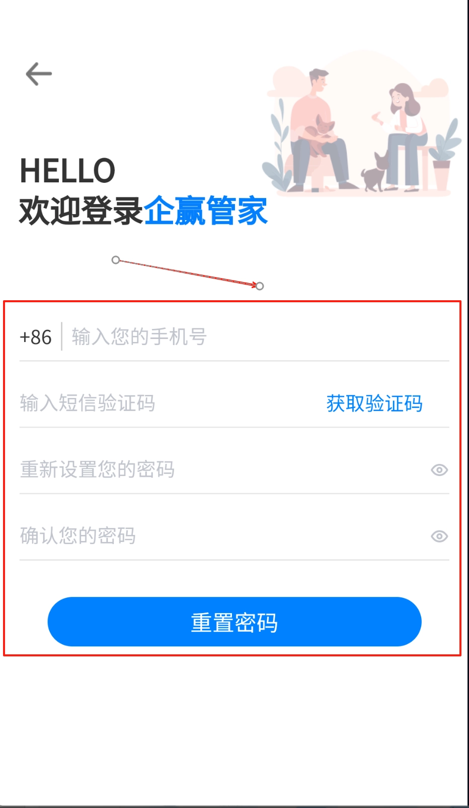 忘记密码不用慌,登录页面找到重置选项,输入手机号获取验证码,两次设置新密码要一致,最后提交就完成啦。