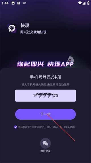 进入登录界面后,输入手机号并勾选相关协议,接着点击【下一步】按钮即可继续;若想快速登录,也可以选择【微信登录】的方式。