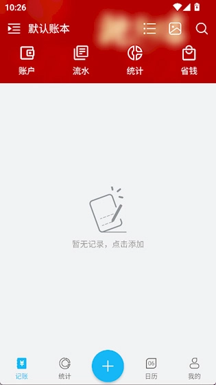 1、记账界面提供流水、账户、账本等功能的快捷入口