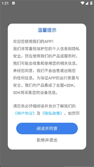 1. 并安装,点击‘阅读并同意’,即可进入主页面;