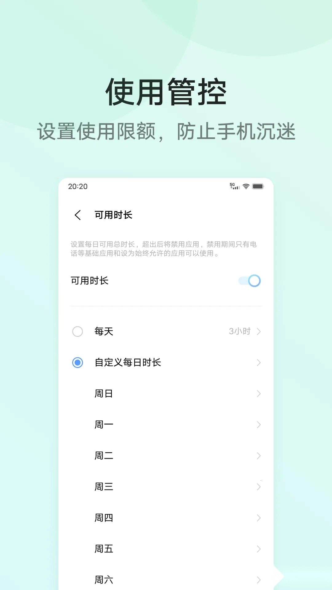 家长能设置使用限额,有效防止孩子手机沉迷。
