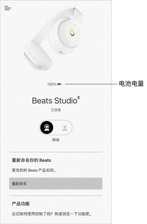 你可以轻松为 Beats 入耳式耳机、头戴式耳机或 Pill+ 扬声器命名,打造专属风格。Beats App 还会提供一些充满正能量的设备名称建议。