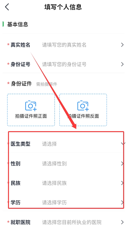 填写个人信息时,记得把身份证正反面拍清楚,医生类型和就诊医院这些信息也都要填写完整哦。
