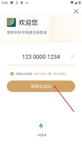 进入登录弹窗后,在【请输入手机号】输入框中填写号码,并且需要勾选【用户协议】与【隐私政策】,这样才能激活【获取验证码】按钮。