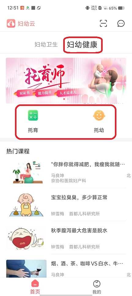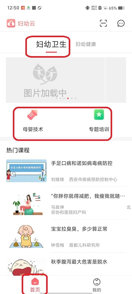 1、首页,母婴保健学习,许多母婴技术和专题培训。