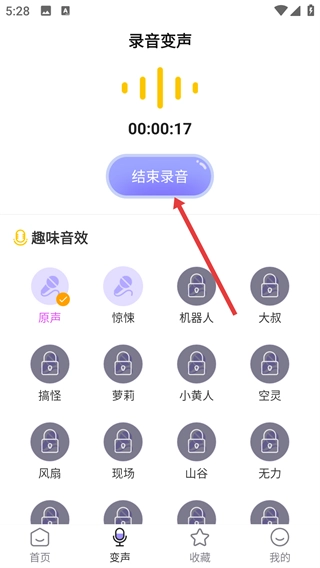 在软件首页,点击底部导航栏中的【变声】选项,即可进入录音变声的操作界面。