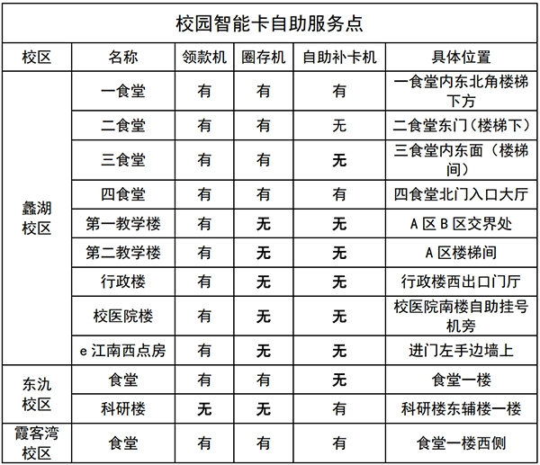 校园智能卡是江南大学校园身份证,可实现用餐、门禁、考勤、图书借阅、校园公交、取快递、自助打印等众多功能
