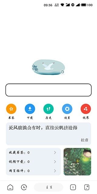 一款简洁美观的浏览器主页,整合了书签、历史记录与设置等实用功能。