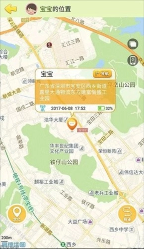 定位功能:点击定位后,地图上立刻显示手表当前所处位置,并且能显示手表当前电量。点击轨迹按钮,可以查看每天手表的运动轨迹,并能动态回放路线。