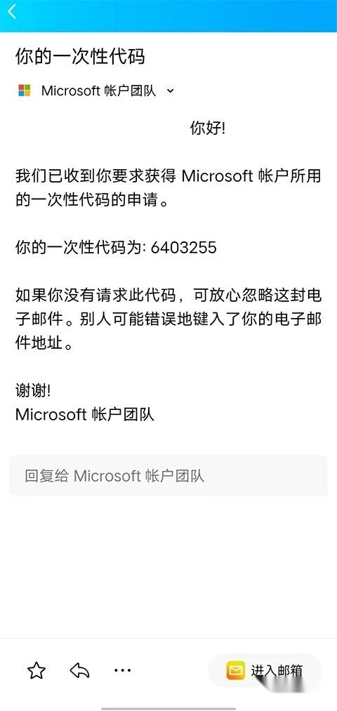 接下来你会收到一封邮件,邮件内包含一次性代码,只需将该代码输入到刚才的验证界面输入框即可。