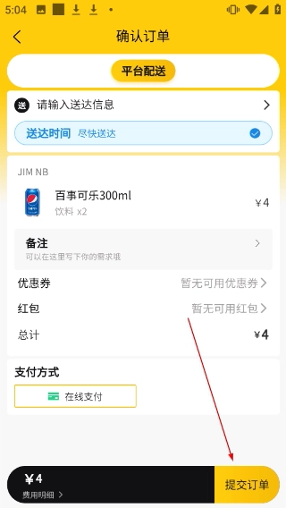 4、订单确认后系统会快速安排骑手接单并执行配送,力求以最短时间将商品送到,优化购物的时效感受。