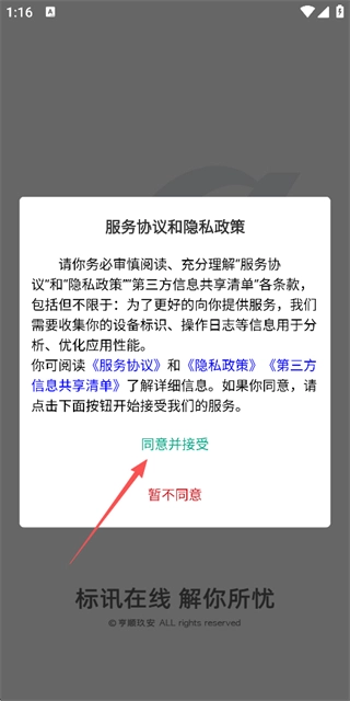 在用户协议与隐私政策的弹窗里点击同意并接受相关条款,即可进入登录页面。