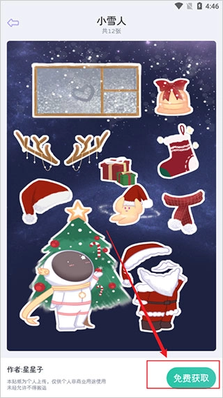 点击“免费获取”按钮,即可喜欢的贴纸。