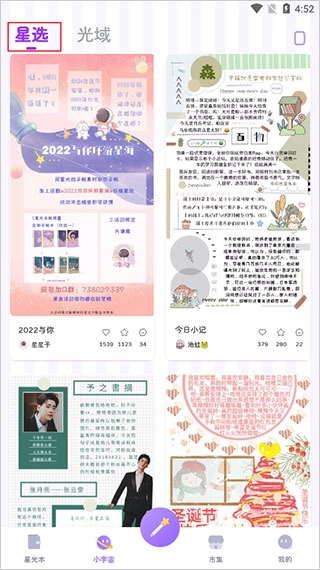 光域模块展示着大众的手帐作品,我们能够关注作者,也可以参与评论互动。