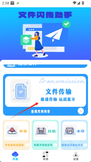 安装并打开文件闪传助手,点击文件传输