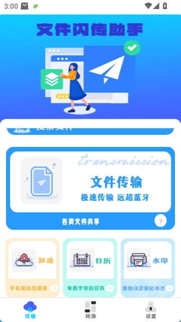 文件闪传助手是一款兼具文件传输与文档格式转换功能的手机应用,可实现pdf转word、pdf转图片、pdf转文字、word转pdf等格式转换操作;文件传输方面支持本地文件的局域网共享,同时还了日历等实用小工具。通过几个简单步骤,就能轻松将手机数据互传到新设备,操作便捷高效。