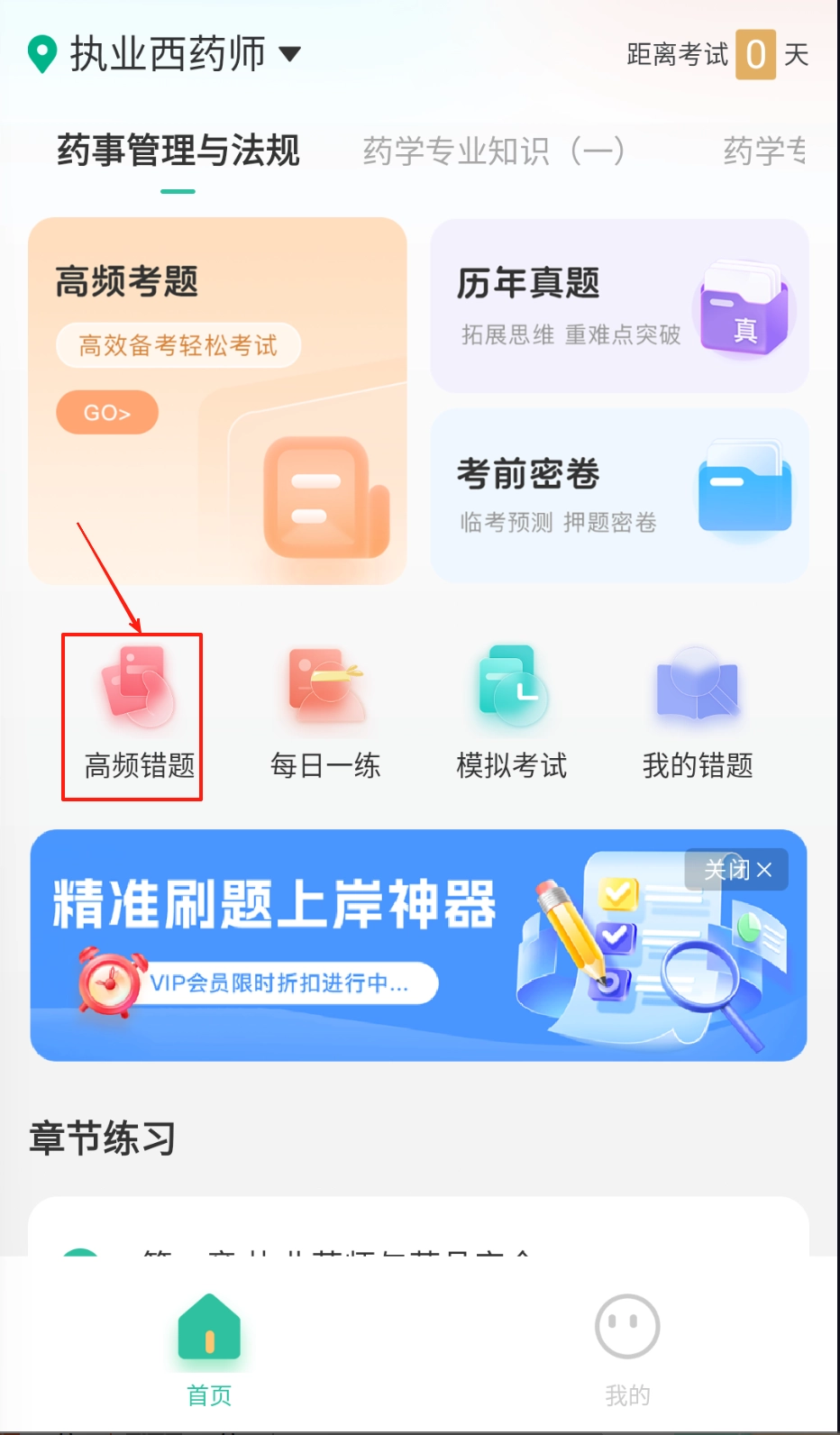 打开后先进行章节练习,系统会依据你的薄弱环节自动推送对应的相关习题,错题则会被自动收录到复习专区。