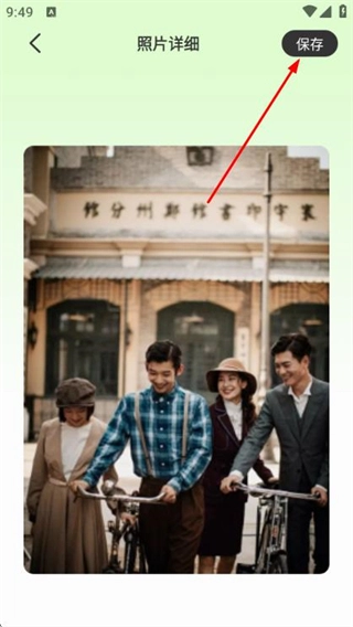3、进入照片详情页面后,点击右上角的保存按钮,即可完成该模板照片的保存操作。